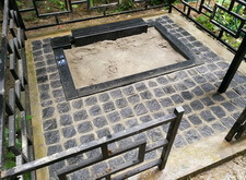 Изначально мы наблюдаем на участке могилу после очередного дозахоронения. На территории её находятся лишь деревянные кресты, снятый с места бетонный цоколь и достаточно простая оградка.